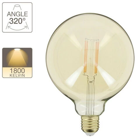 - Ampoule LED déco Globe (G125) / Vintage au verre ambré, culot à vis E27 permettant une installation simple et rapide