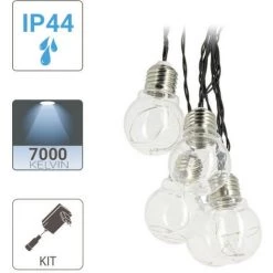 Guirlande LED (5m) composée de 10 ampoules au format P45, à la lumiÚre blanche bleutée (7000 kelvins).