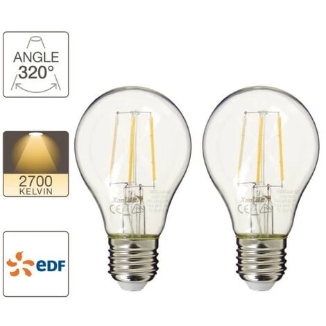 Lot de 2 ampoules Retro-LED A60, cuLot E27, EDF, 2700 kelvins