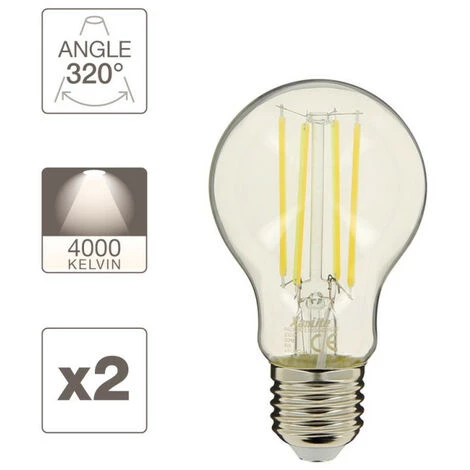 Lot de 2 ampoules de forme standard (Ă 6cm) et au culot E27. Avec son filament apparent, ces ampoules bĂ©nĂ©ficient du design des ampoules incandescentes associĂ© Ă la technologie LED et tous ses avantages. Avec leur consommation de 8W (soit une puissance dâĂ©clairage 75W Ă©quivalence) et leur couleur dâĂ©clairage  » blanc neutre » (4000 kelvins), elles seront idĂ©ales pour vos Ă©clairages dâambiance.
