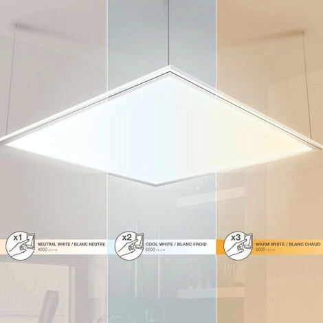 - Plafonnier carrĂ© a tempĂ©rature de lumiĂšre variable, vous pouvez sĂ©lectionner la tempĂ©rature de lumiĂšre Ă©mise par votre dalle d’un simple clic sur votre interrupteur.