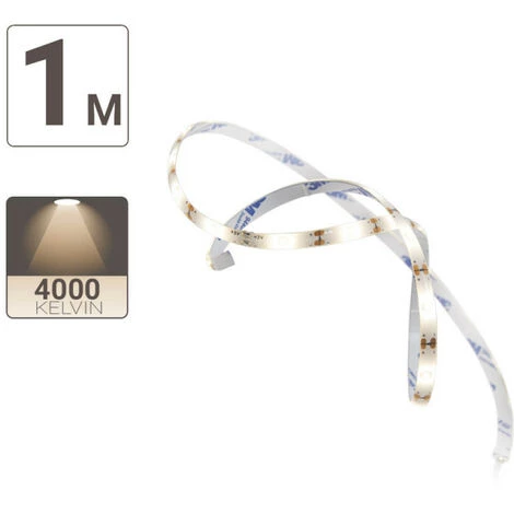 - Ce ruban LED lumineux de 1 mètre délivre une lumière blanc neutre (4000K) de 150 lumens.