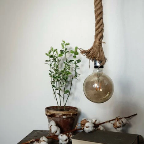 - Suspension vintage, en corde de chanvre pour ampoule Ă culot E27